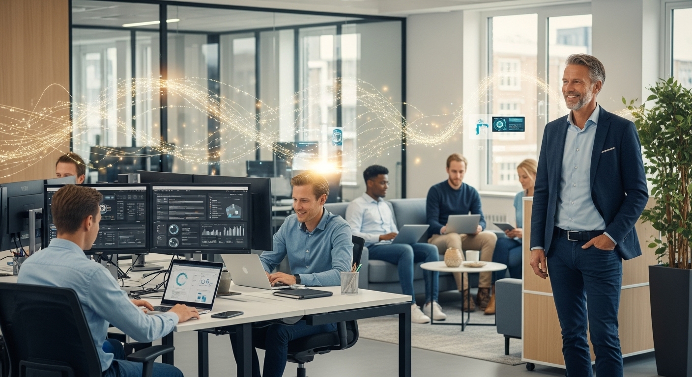 De week na de migratie was een openbaring. De ware kracht van de nieuwe omgeving werd al snel duidelijk. Waar voorheen intern werd gemaild over projectupdates, ontstonden er nu levendige conversaties in Microsoft Teams-kanalen. Documenten werden niet langer heen en weer gestuurd, maar live en tegelijkertijd bewerkt in SharePoint. De vraag “Wie heeft de laatste versie?” verstomde voorgoed. Een adviseur die vaststond in het verkeer, kon via zijn laptop direct deelnemen aan de videovergadering, alsof hij aan tafel zat. De integratie van telefonie in dit ‘All-in-One Communication Platform’ betekende dat klantcontact soepeler liep dan ooit. Voor Daan was het alsof de rem van zijn organisatie was gehaald. De processen die voorheen stroperig en traag waren, voelden nu vloeibaar en snel. Het was meer dan alleen ‘Slim Werken’; het was een fundamentele verandering in de cultuur van het bedrijf. De technologie was niet langer een hindernis, maar een motor voor productiviteit en samenwerking. De energie die voorheen verloren ging aan IT-frustraties, kon nu volledig worden gericht op waar het echt om draaide: de klanten.
