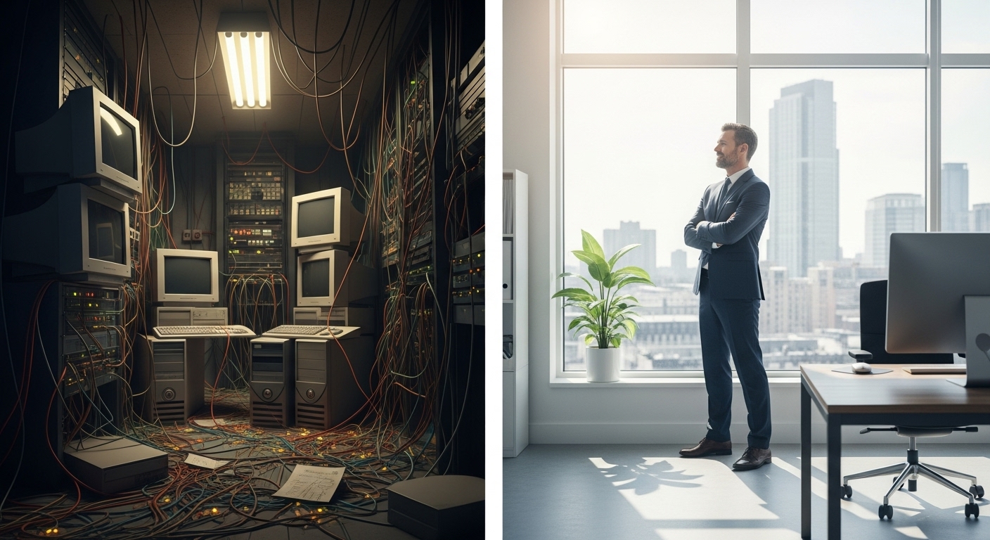 De wake-up call kwam op een grijze dinsdagochtend. Een graafmachine had, een paar straten verderop, een belangrijke stroomkabel geraakt. Het licht in het kantoor flikkerde en viel toen volledig uit. De noodverlichting sprong aan en een ijzige stilte daalde neer, alleen doorbroken door het langzaam wegstervende gezoem uit de serverkast. Paniek maakte zich meester van Maarten. De hele operatie lag plat. Geen e-mail, geen toegang tot klantgegevens, geen productieschema’s. Zijn bedrijf was in één klap blind, doof en stom. De freelancer was onbereikbaar en de uren die volgden, waren een pijnlijke demonstratie van zijn kwetsbaarheid. Terwijl de medewerkers met de handen in het haar zaten, drong de keiharde realiteit tot hem door: hij was de controle volledig kwijt. Zijn hele bedrijfsvoering was afhankelijk van die ene, zoemende machine in die kwetsbare kast. Die dag ging er voor duizenden euro’s aan productiviteit verloren, maar de schade aan het vertrouwen – zowel intern als bij de klanten die ze niet te woord konden staan – was onbetaalbaar. Het was het definitieve kantelpunt. Toen de stroom aan het eind van de middag terugkwam en de systemen met horten en stoten weer tot leven kwamen, was de opluchting van korte duur. Het werd overschaduwd door een nieuw, onwrikbaar besef: dit nooit meer. De afhankelijkheid van fysieke hardware was geen bedrijfsrisico meer; het was bedrijfsmatige zelfmoord. De zoektocht naar een alternatief was niet langer een optie, maar een absolute noodzaak voor overleving.